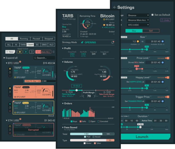 Our innovative design enables you to have an intuitive and effective way to monitor your orders and strategies. The interactive strategy view gives you real-time analytics of all your strategies.